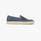 Ein gelegentlicher Loafer, der aus weichem steinfarbenem Wildleder hergestellt wurde. Verfügt über eine gepolsterte Leder -Innensohle für zusätzlichen Komfort. Fertig mit einer langlebigen Gummi -Sohle für den täglichen Verschleiß.
